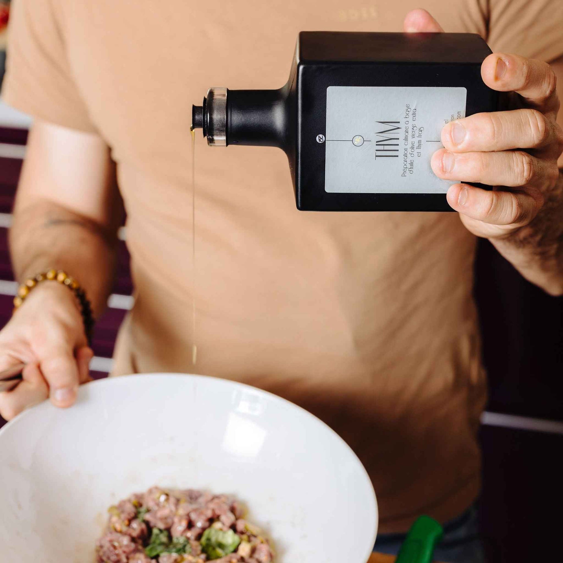 Fruit de notre collaboration avec le talentueux chef Antonio Salvatore du restaurant Rampoldi à Monaco, cette huile d'olive au thym incarne l'âme authentique de la Méditerranée. Élaborée artisanalement par macération, elle révèle toute la puissance aromatique du thym sauvage, cette herbe emblématique qui parfume les collines du sud de l'Italie et de la Côte d'Azur.